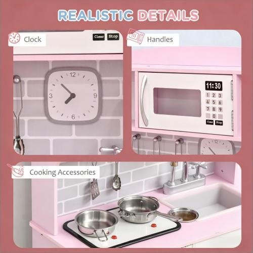 • – Includes Kitchen Accessory Set: The kitchen set for kids includes an accessory set of two pans, three wooden utensils, and a lid. The utensils hang on a triple row of hooks, making them easy to put away.