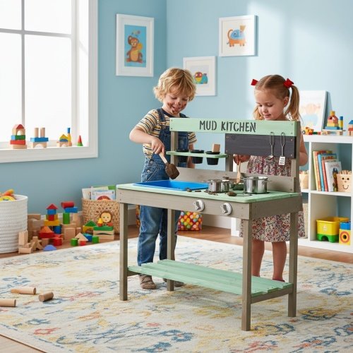 - Encourages Imaginative Play: Kids mud kitchen inspires creativity and role-playing as children pretend to cook and serve, enhancing social skills and teamwork.